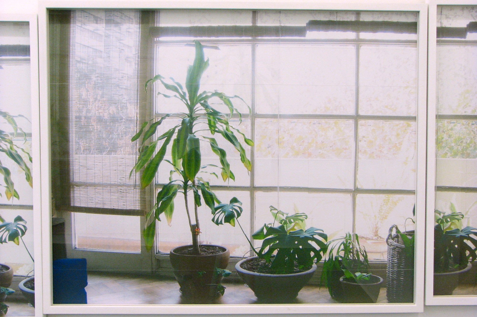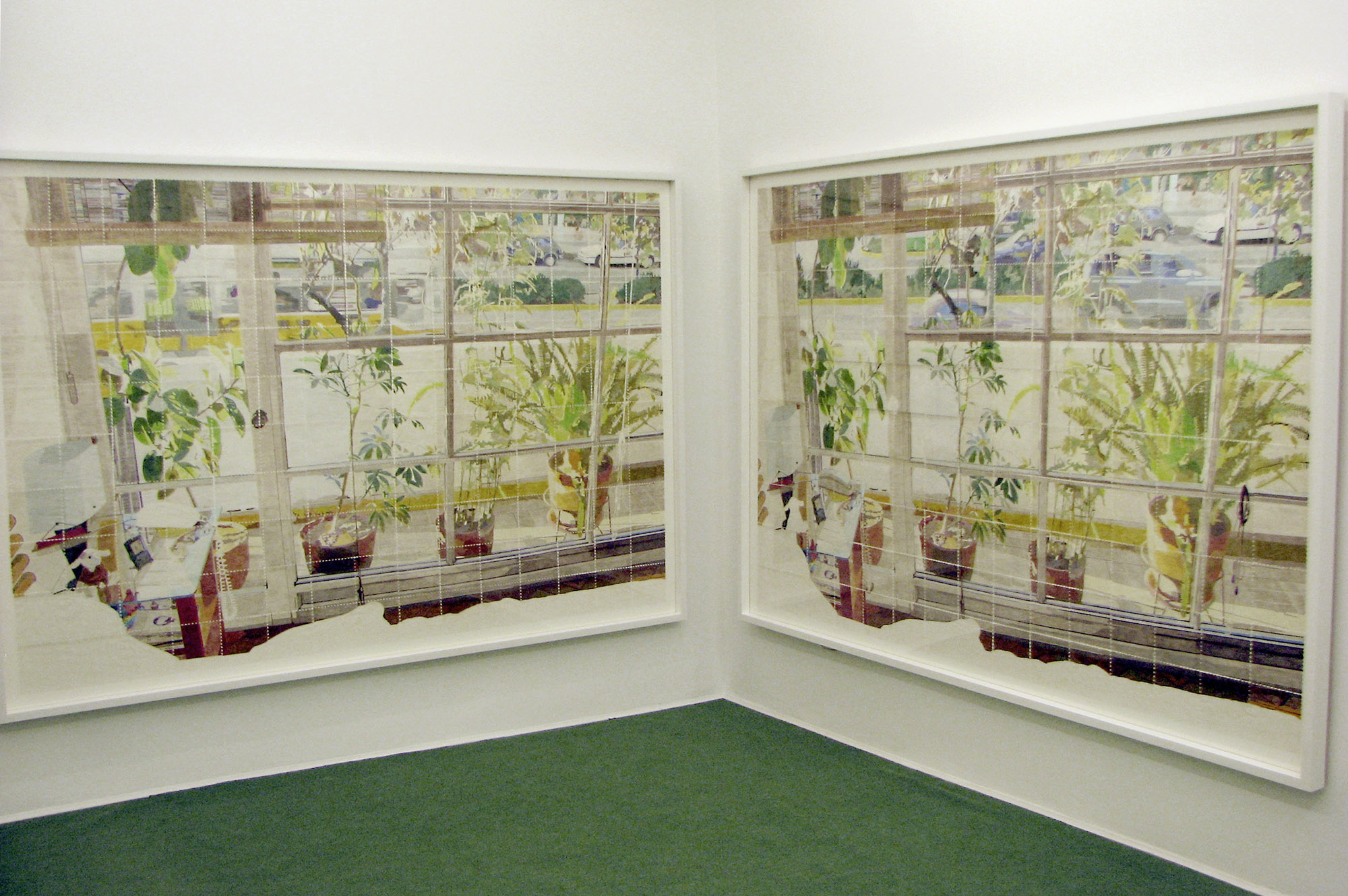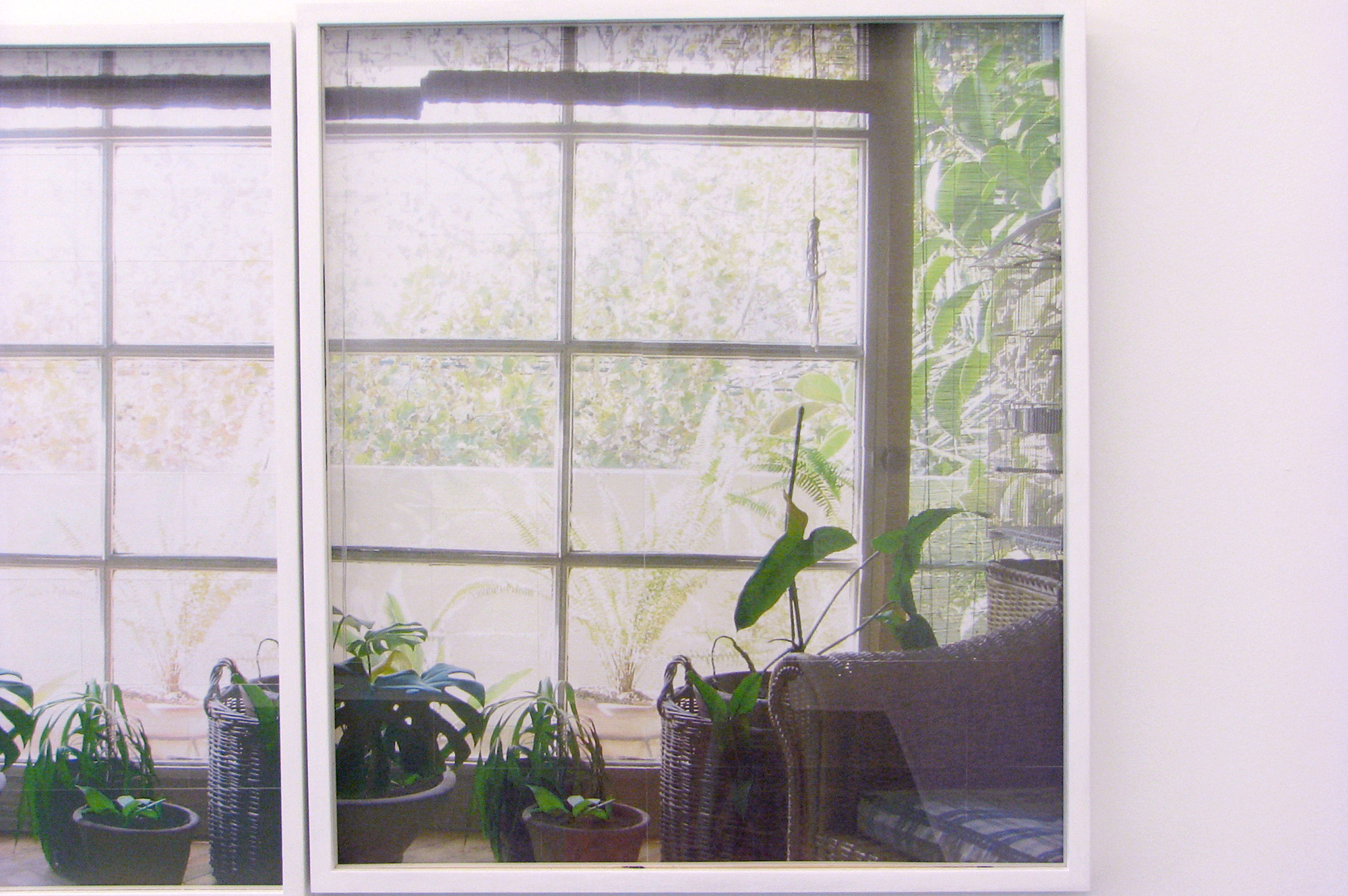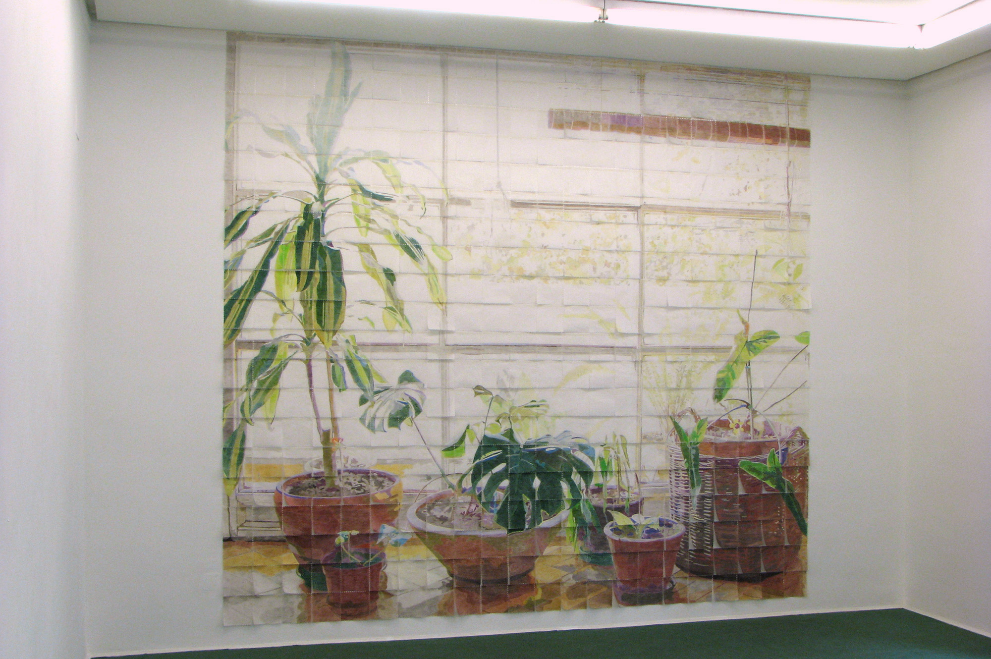 La instalación mural está formado por 528 servilletas de papel coloreadas a mano, y tiene como referencia la imagen fotográfica de un ventanal en la sala de su casa, frente al cual se ubican varias plantas, mientras a través de los vidrios es posible distinguir algunas plantas del exterior. Su interés en esta imagen está en la posibilidad de reproducir manualmente el alto contraste de la fotografía de origen, que provoca que el exterior se queme para lograr exponer correctamente los objetos dispuestos en el interior de la habitación.